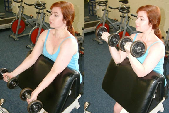 Preacher curls eliminate momentum, emphasizing bicep activation. Using an EZ curl bar or dumbbells, perform curls on a preacher bench for better isolate and peak development.